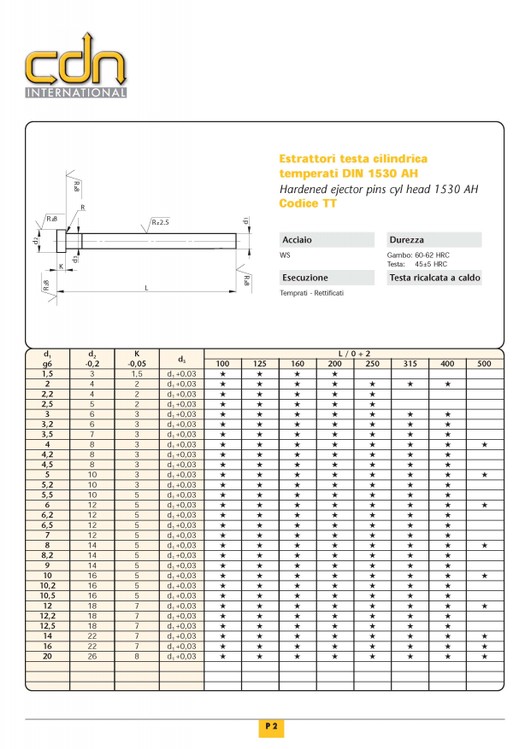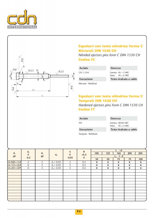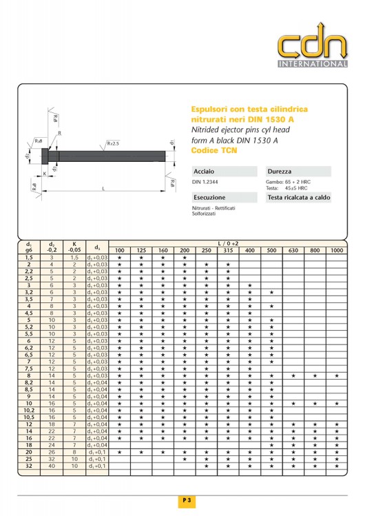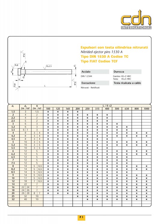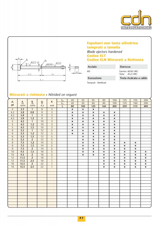 ESPULSORI TESTA CILINDRICA NITRURATI TIPO DIN 1530A - |