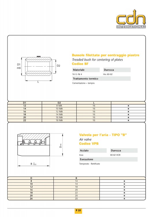 BUSSOLE FILETTATE PER CENTRAGGIO PIASTRE |
