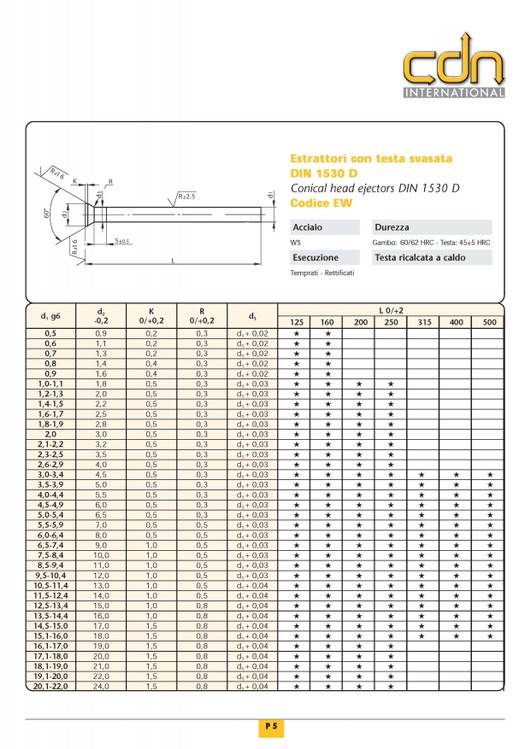 ESPULSORI NON NITRURATI LAVORABILI DIN ISO 6751 A |