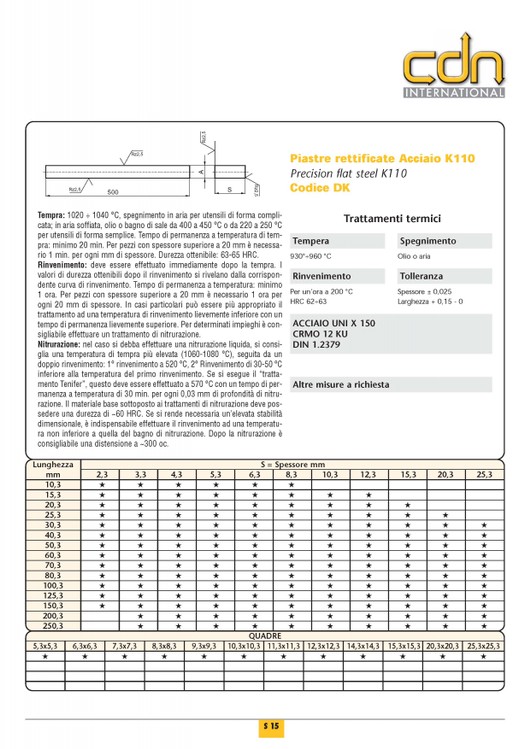 PIASTRE RETTIFICATE ACCIAIO K110 |