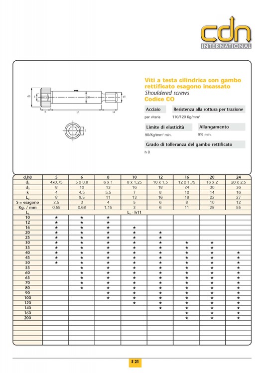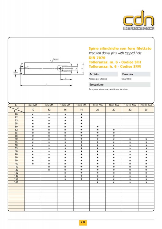 SPINE CILINDRICHE CON FORO FILETTATO DIN 7979 TOLLERANZA h6 - |